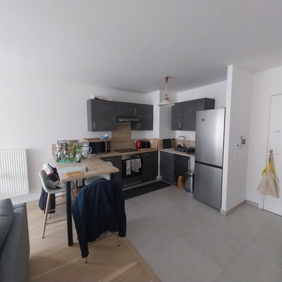 Très agréable appartement 2 pièce dans immeuble récent à 3mn de la gare au 1er étage avec ascenseur comprenant: pièce principale avec cuisine américaine, chambre, salle de douches avec wc et balcon.Excellent état.Très calme avec jolie vue dégagée.Proche commerces et garePossibilité de louer un parking en s/sol pour 95 €/mois