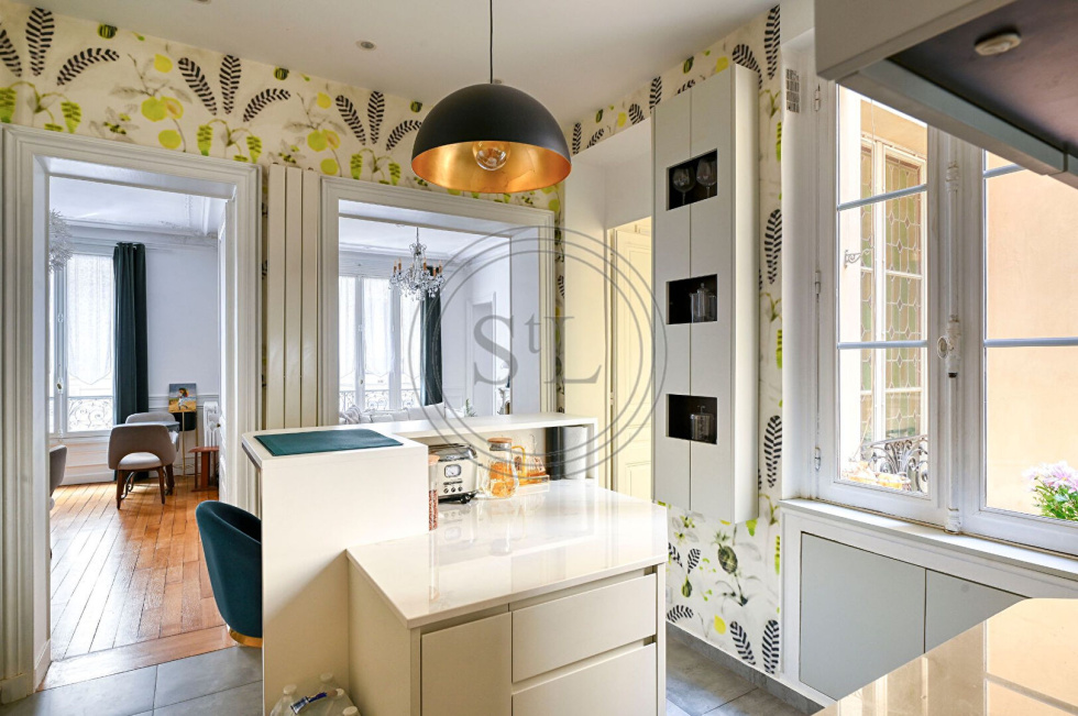 Situé au coeur du très recherché Triangle d'Or, dans le prestigieux quartier Notre-Dame, cet appartement de caractère prend place au sein d'un immeuble ancien parfaitement entretenu, bénéficiant d'un ascenseur.D'une élégance rare, ce bien offre une superficie généreuse et allie avec subtilité le charme de l'ancien à des prestations contemporaines de grande qualité.L'appartement se compose d'une entrée, d'un vaste double séjour avec espace salle à manger, de deux chambres, d'une salle de bains avec coin buanderie, ainsi que d'une cuisine entièrement aménagée et équipée, réalisée sur mesure.Les éléments d'époque, parquet en point de Hongrie, cheminée, hauteur sous plafond avec moulures confèrent à ce lieu une atmosphère raffinée et chaleureuse. Le confort moderne n'est pas en reste, avec des menuiseries sur mesure, un double vitrage phonique et thermique, et de nombreux rangements intégrés.Son emplacement d'exception, à proximité immédiate des commerces de bouche, du marché Notre-Dame, des établissements scolaires réputés et des transports (gare Versailles Rive Droite, ligne L Paris Saint Lazare), en fait un bien rare à la vente.En complément de l'appartement principal :Une studette indépendante de 15 m², située au 5e et dernier étage (accessible par l'ascenseur), vient parfaire ce bien.Elle comprend une entrée, une pièce principale, une cabine de douche, une kitchenette équipée ainsi que des WC sur le palier.Une cave saine de 15 m² en sous-sol complète l'ensemble.Une adresse confidentielle, un bien au cachet indéniable, destiné à une clientèle exigeante en quête d'un art de vivre à la versaillaise. (5.05 % d'honoraires TTC à la charge de l'acquéreur.)Copropriété de 33 lots - dont 11 lots habitation. (Pas de procédure en cours).Charges annuelles : 2460.00 euros.