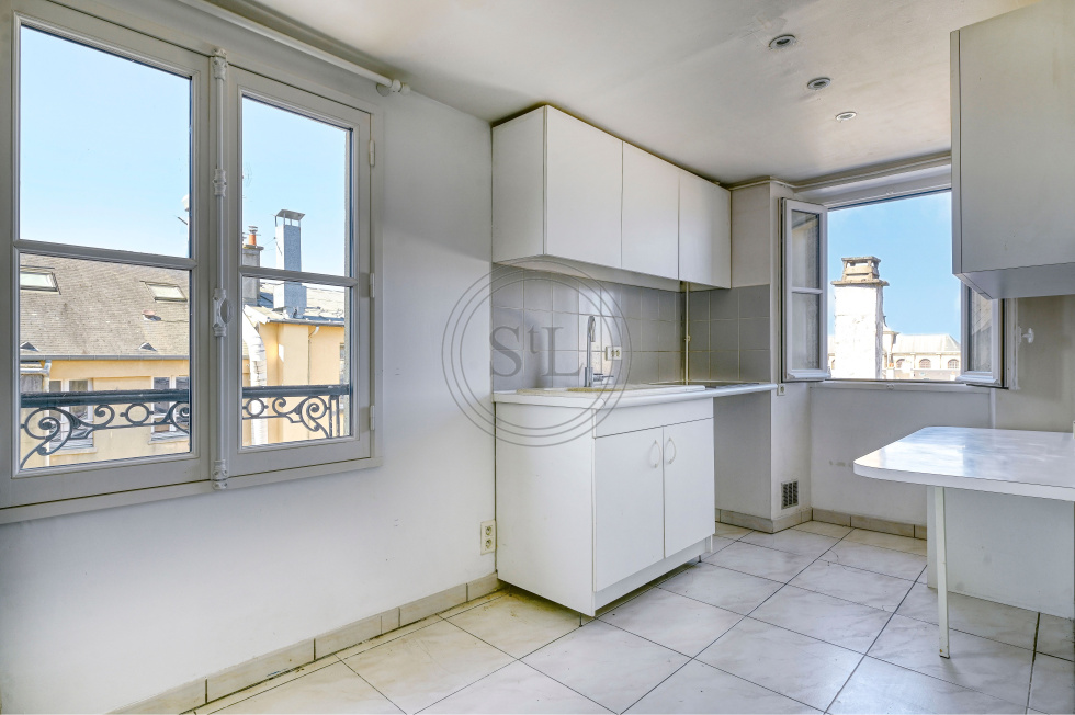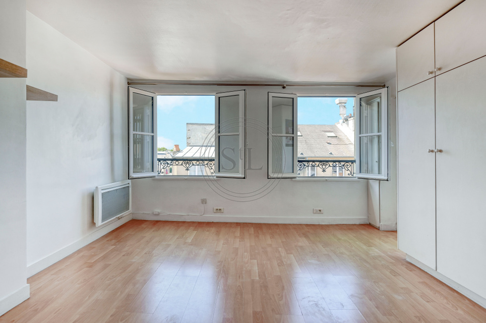 En exclusivité au coeur des Halles de Versailles, proche de la gare Rive Droite, au 4ème et dernier étage, l'Agence Saint Louis Immobilier vous propose un f2 donnant sur cour au calme composé d'une belle pièce principale avec placards, une cuisine équipée, une salle d'eau avec WC. Chauffage et eau individuels électriques.