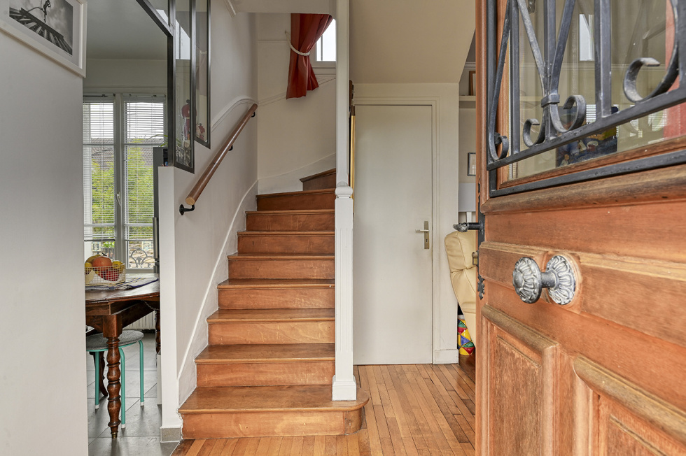 Dans une impasse privée, au calme absolu, et à quelques minutes seulement des gares des Versailles Chantiers (ligne N) et Porchefontaine (RER C), venez découvrir cette charmante maison édifiée en 1927 sur une parcelle de 136m2.D'une superficie totale de 107.65m2 (dont un garage de 12,50m2), et en très bon état général, elle offre au 1er niveau, en rez-de -haussée surélevé, un séjour orienté au Sud-Ouest, une cuisine avec verrière-atelier, aménagée et équipée, ainsi qu'un WC indépendant.Au 1er étage, deux chambres et une salle d'eau avec WC.Au 2ème étage, sous combles, deux petites chambres ou bureaux et un WC indépendant.Au sous-sol, un garage, une grande buanderie et une douche d'été.Agréable terrasse ensoleillée. Fenêtres en double-vitrage. Chaudière récente.