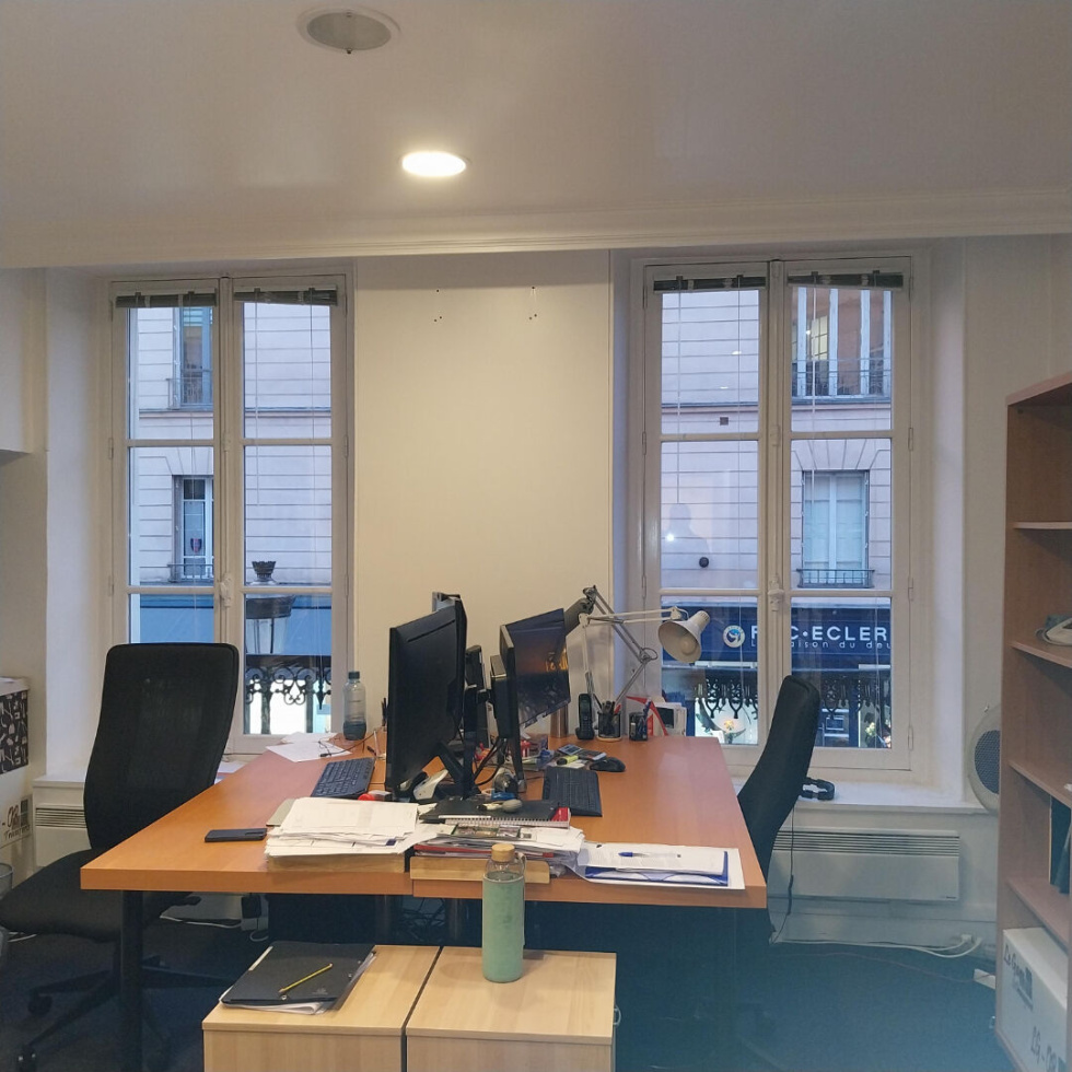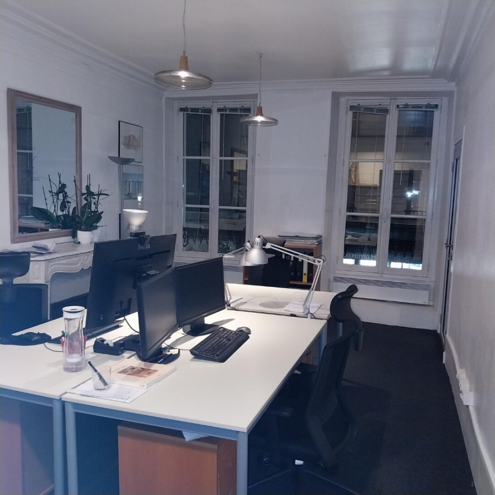 Bel ensemble en parfait état de 4/5 bureaux au 1er étage dans immeuble ancien à 2 pas du Palais de Justice en plein centre de Versailles.Entrée, 4/5 bureaux , cuisine et WCProche tous commerces, parking et garesExcellent étatLoyer soumis à TVA
